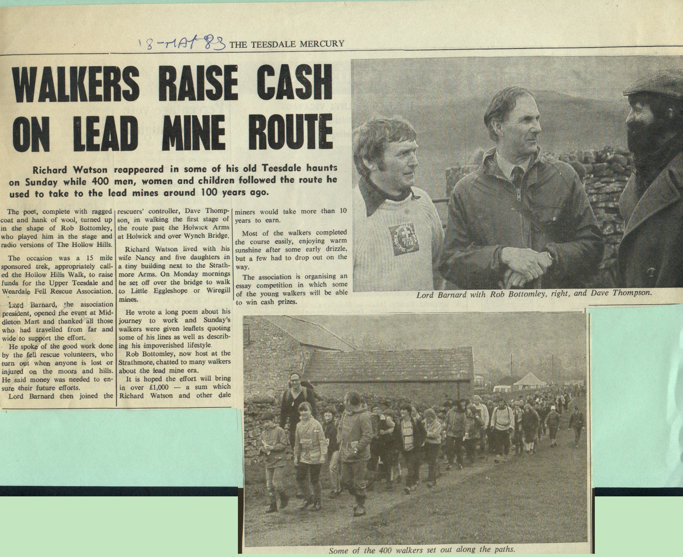 Back to index Back to 1983 "Walkers raise cash on lead mine route".