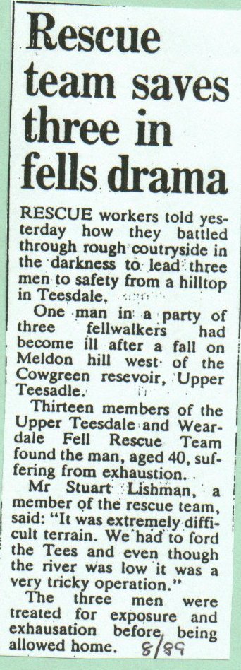 Back to index Back to 1989 "Rescue team saves three in fells drama". callout, Meldon Hill, successful.