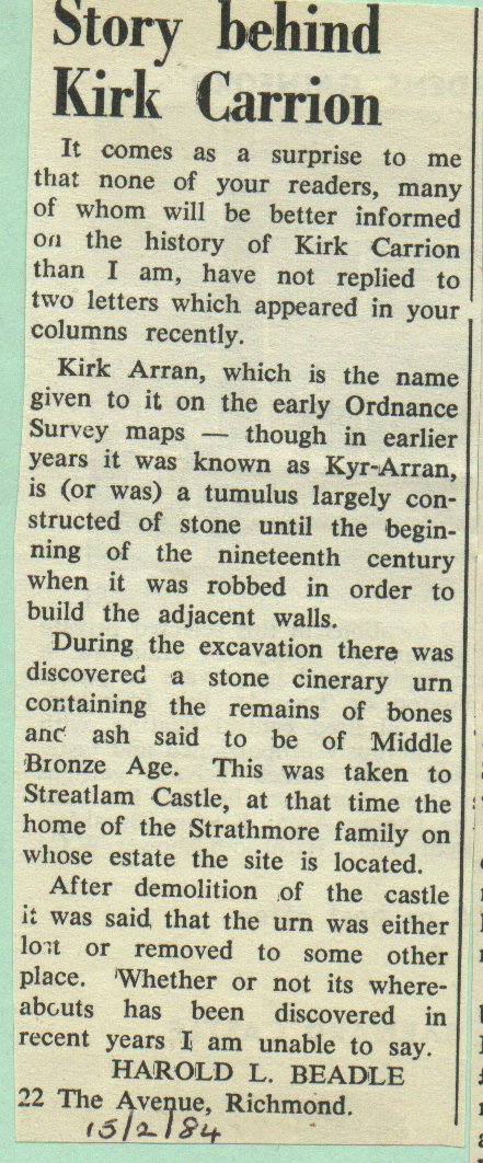 "Story behind Kirk Carrion". archaeology